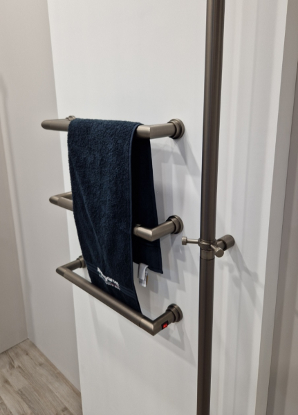 Bars Electric je zcela nový systém elektricky vyhřívaných madel, které je možno instalovat na zeď (zpravidla rovnoměrně nad sebe). Madla jsou vyrobena z masivní mosazné trubky o Ø 25 mm a uvnitř osazeny elektrickým topným drátem. Ohřev uvnitř probíhá čist Zobrazit více